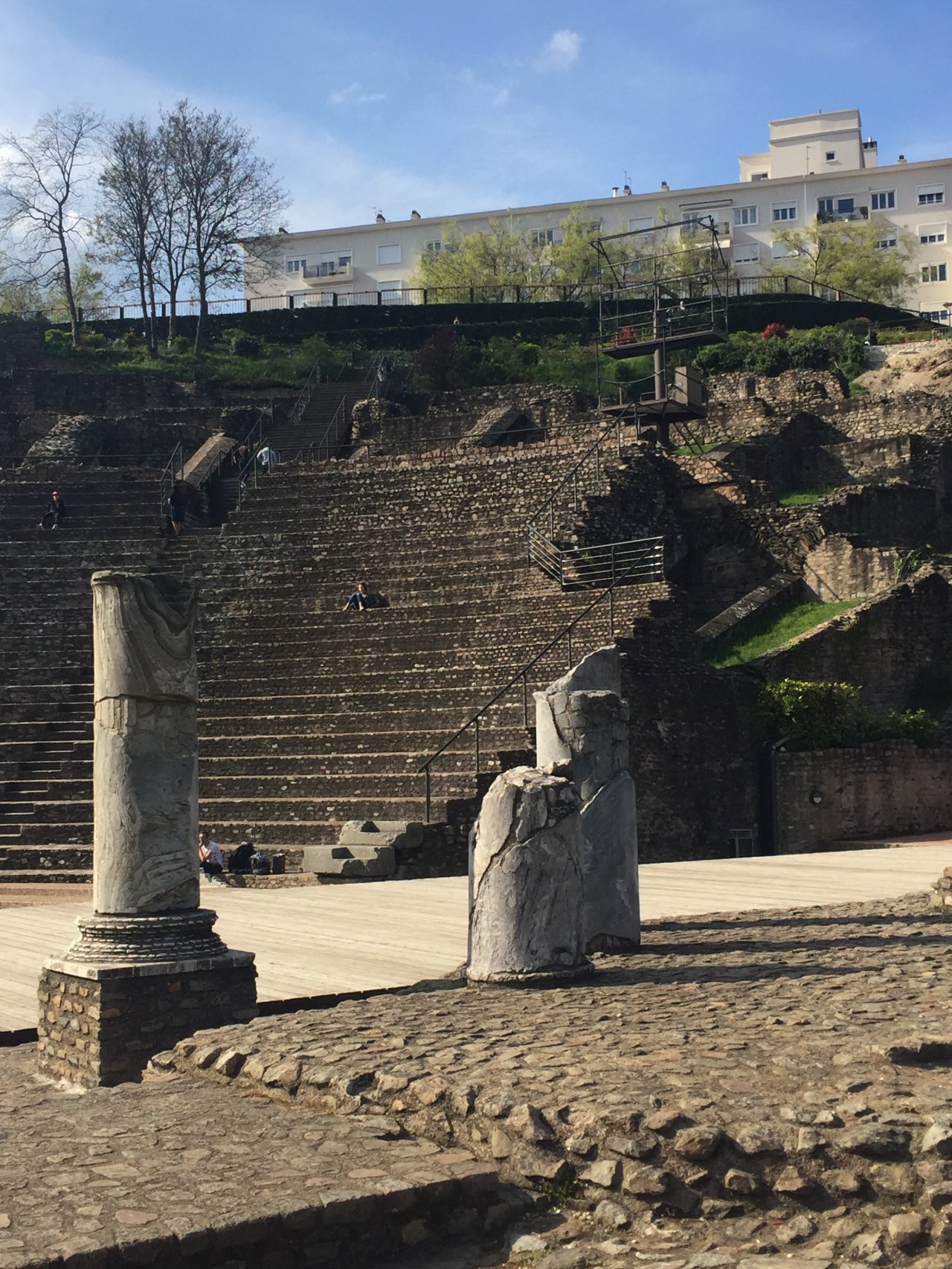Leaving the park, we continued walking to visit the Roman ruins. Due to it’s location and influence, Lyon was one of the most important cities during the Roman Empire rule, and grew rapidly in both size and wealth. Lyon has many Roman ruin remains including an amphitheater, theater, Odeon, and museum.