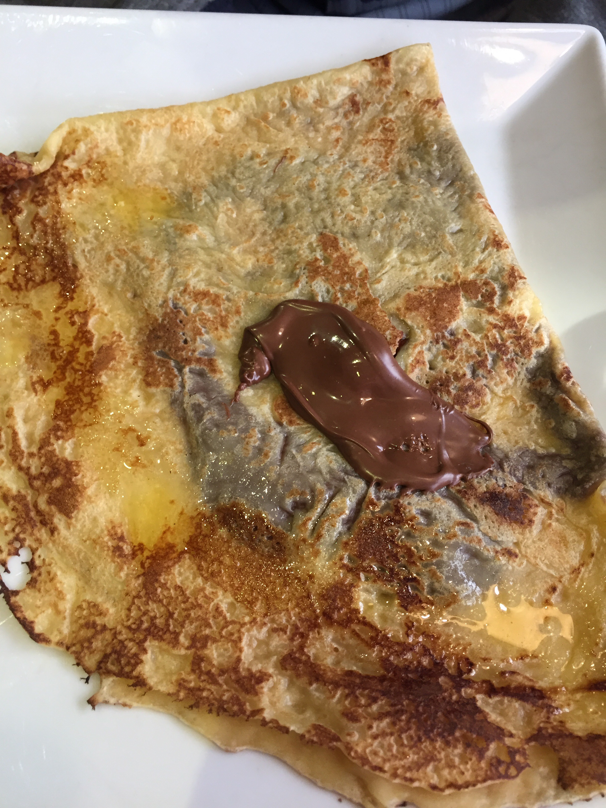 Our next course was a sweet crepe. I ordered the apricot and Daniel went for chocolate.