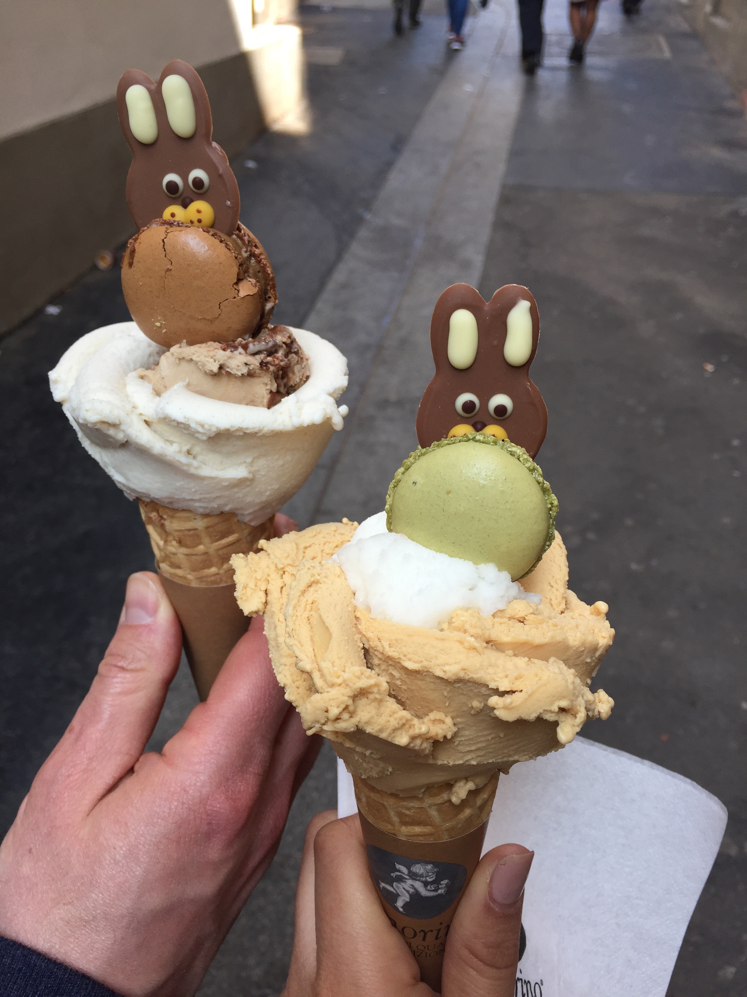 Being as the sun was shining, we were feeling quite warm, and it was our last day, we felt it was essential to stop for a gelato. I had been eyeing up a shop since we arrived, who construct a beautiful rose shape out of gelato and then place a macaroon on the top. It was obvious this was where we had to stop.