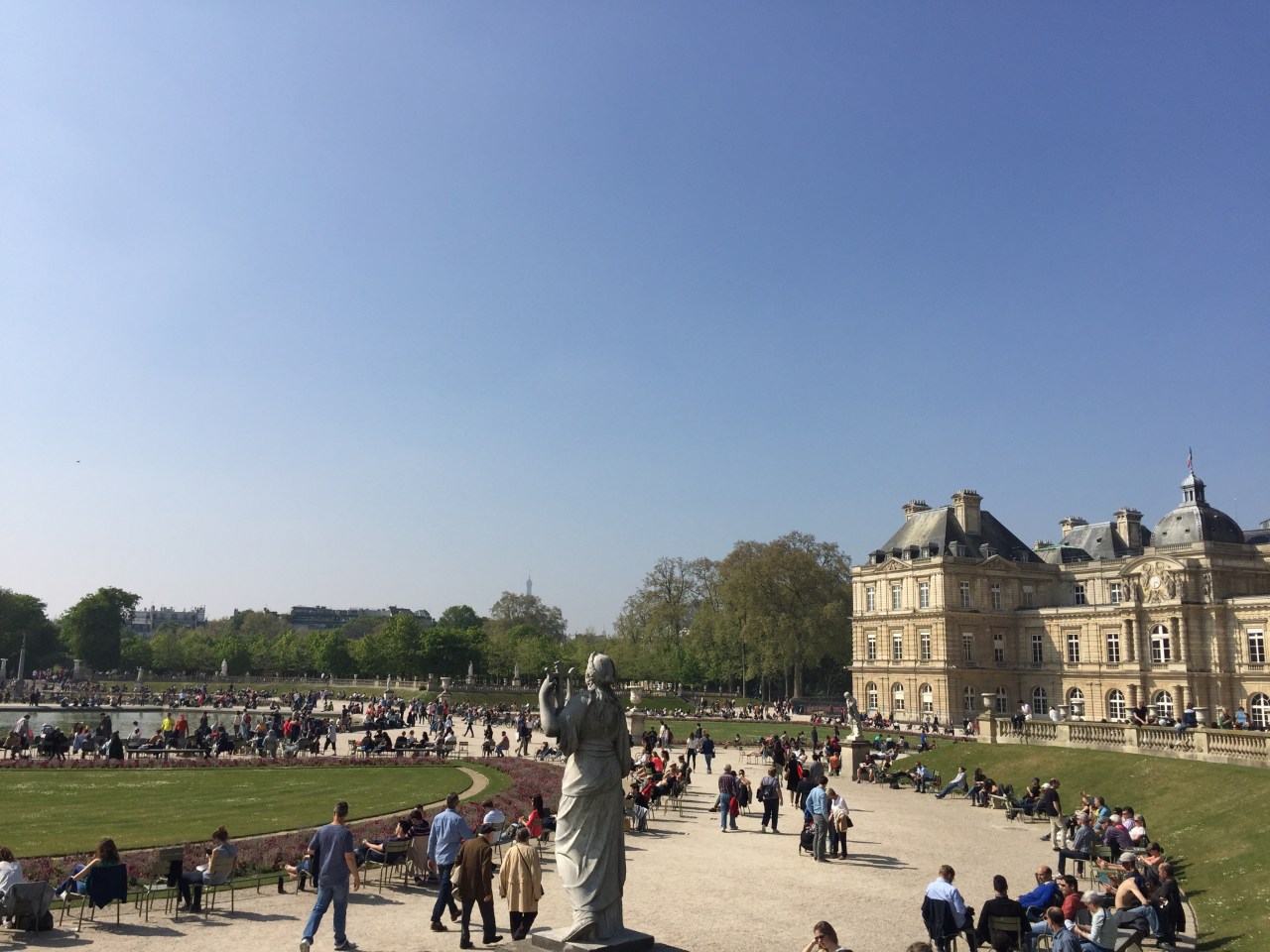 With our picnic lunch in hand, we wandered to Jardins du Luxembourg to relax. These gardens were constructed alongside the Luxembourg Palace in 1612 by Marie de’ Medici, the widow of King Henry IV of France. The main pool and palace area is surrounded by numerous statues of queens and famous women of France.