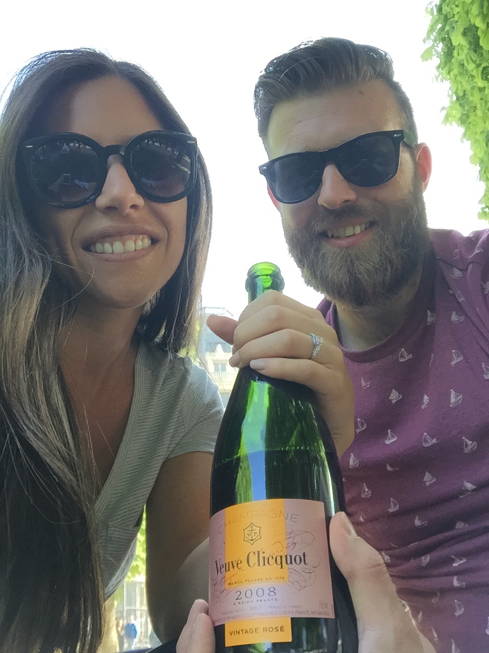 After endless strolling, we finally decided on a place to sit down where we could open our newly purchased bottle of Veuve: a 2008 vintage rosé. Posing the bottle and snapping pictures, as any amateur photographer would, I was surprised when I turned around to see something else sparkling in the sunlight: a ring! As if anything couldn’t be more romantic, I of coursed said yes, we popped our champagne, and enjoyed our final day ever more!