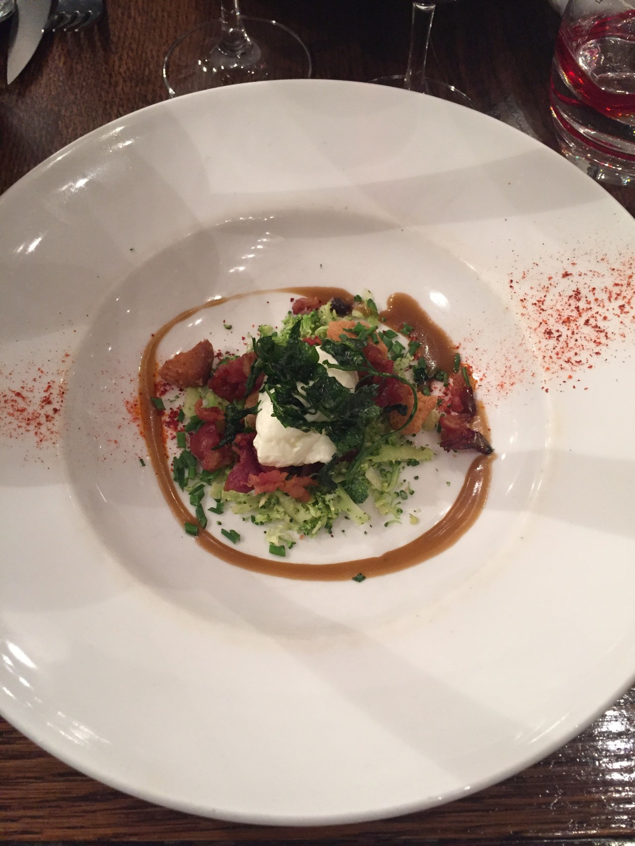 For our final evening, we made a reservation at a place called Les Papilles to not only make our last meal a great one, but to also celebrate our exciting news. This restaurant has a set meal each night, which changes constantly, for around €40. We ordered a recommend bottle of wine and then our meal began with broccoli soup. They served us each separate, garnished bowls, and then the soup in a pot. It was heaven!