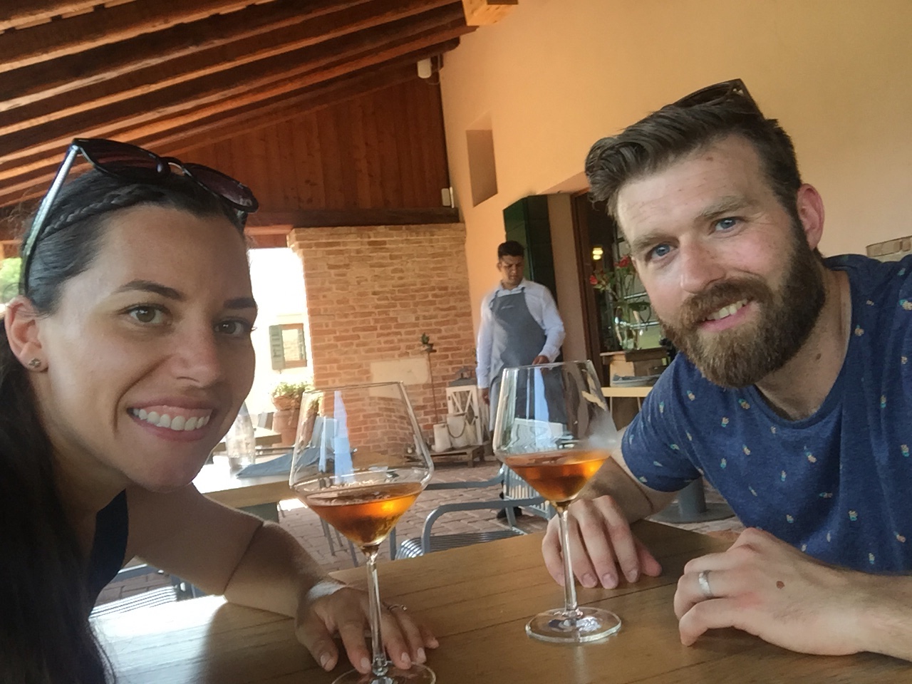 Hot and hungry, we hopped back onto the vaporetto and ventured back to Venice. We walked through the beautiful streets to our dinner destination, Birraria La Corte, a local restaurant inside an old brewery. We began with a local IPA for Daniel and an Aperol spritz for myself.