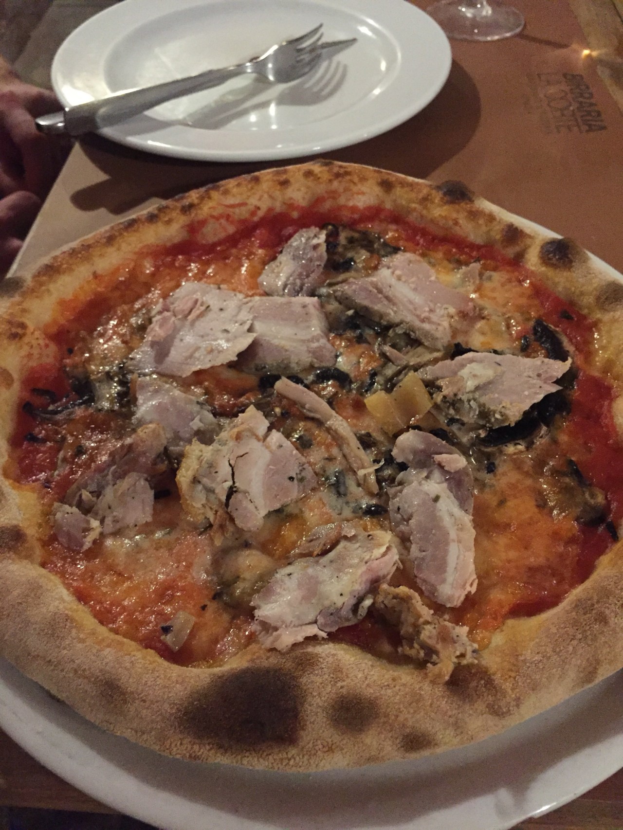 Finally, we ordered our first pizza: cheese, mushrooms, porchetta. Simple ingredients make something extraordinary.