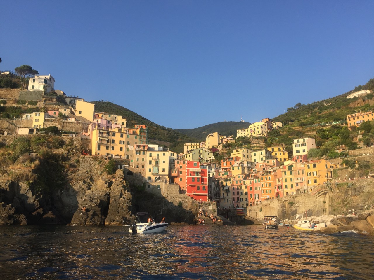 We stopped out in the water just outside Monterosso, and all jumped off of the boat into the water for an evening swim. We were completely surrounded by beauty of the cliffs, water, and sunset.