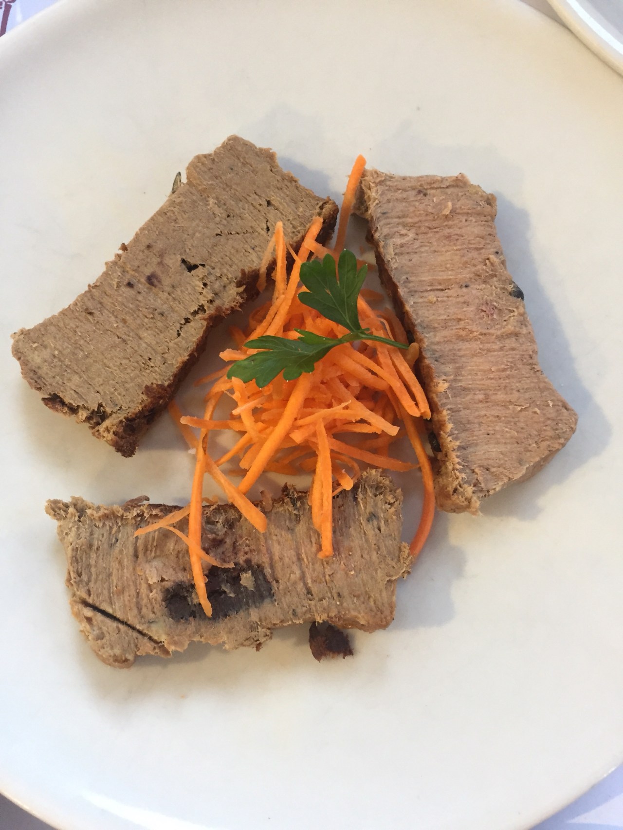 We stopped for dinner at a little local place called Cul de Sac, and sat outside to enjoy the lively street. We began our dinner with pâté, a sampler actually. We had the hare and truffle, sweet and sour boar, and partridge and juniper. They were all so good, but the hare was the winner in my books.