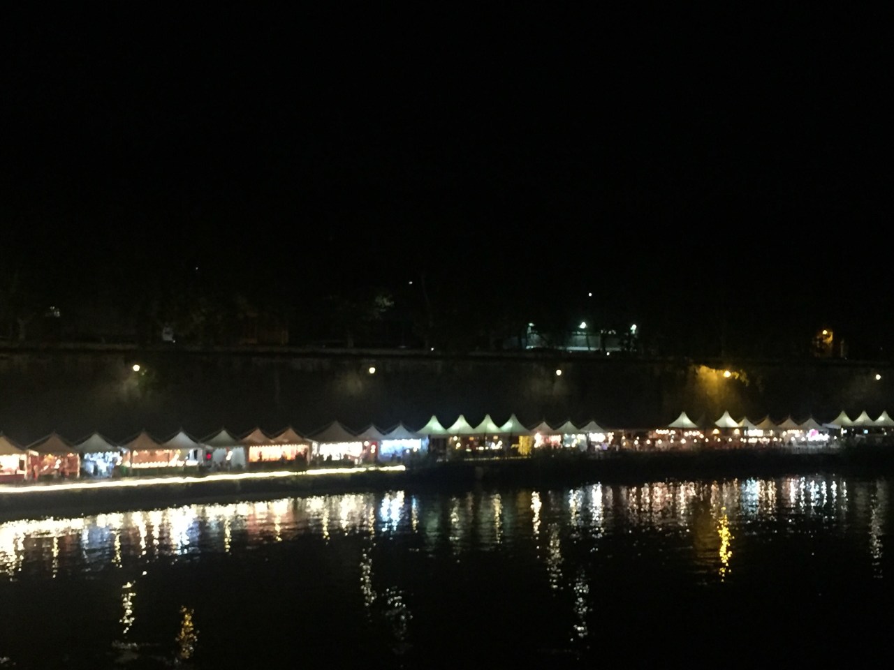 Then, we walked back over to our side of town to see what was happening. We stopped to get a peek at the Basilica, before walking down by the river to check out a night market.