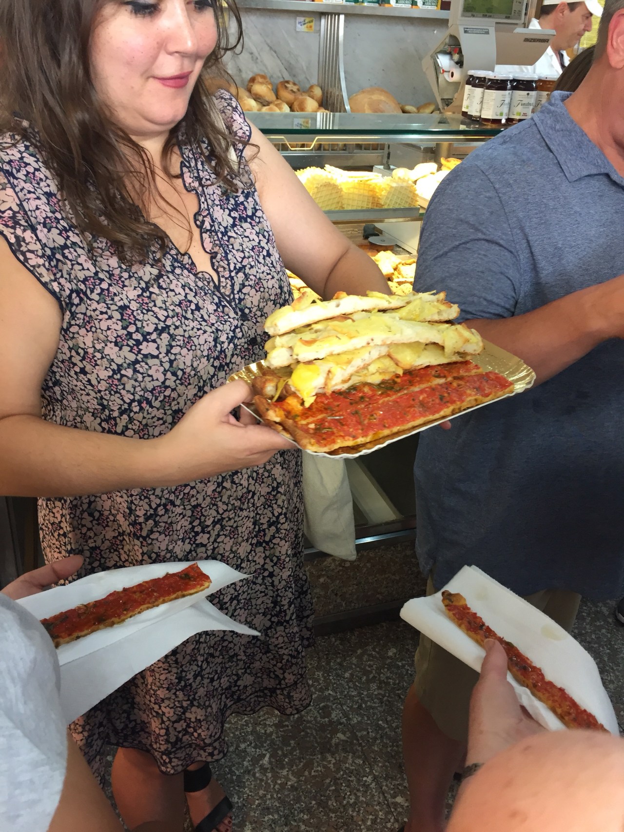 Meeting our guide, we walked to our first stop, Pacifico Passi. This is a family run bakery that has been run by the Passi family since 1975. Here we had pizza for breakfast! The first was a marinara and the second was a potato.