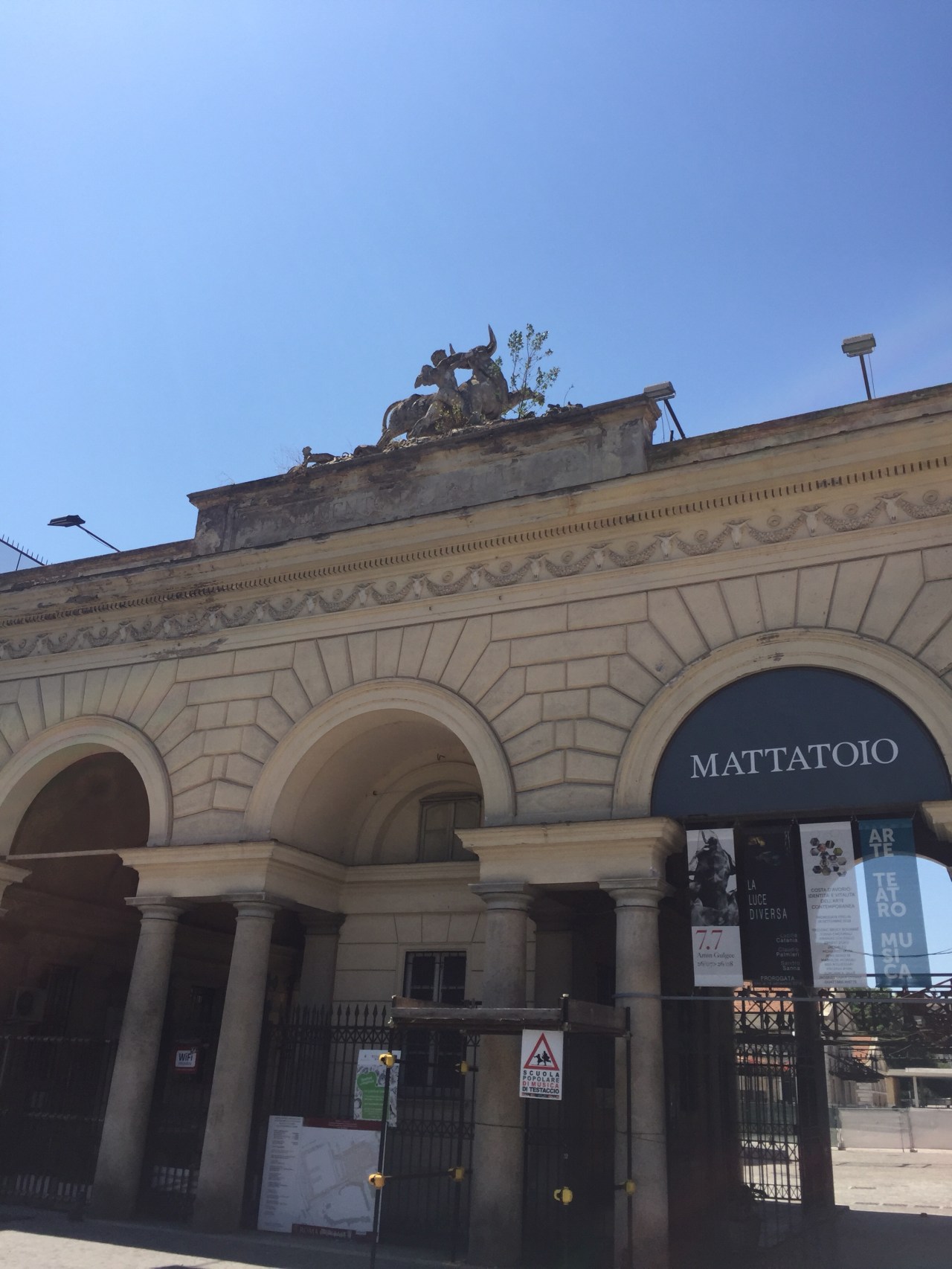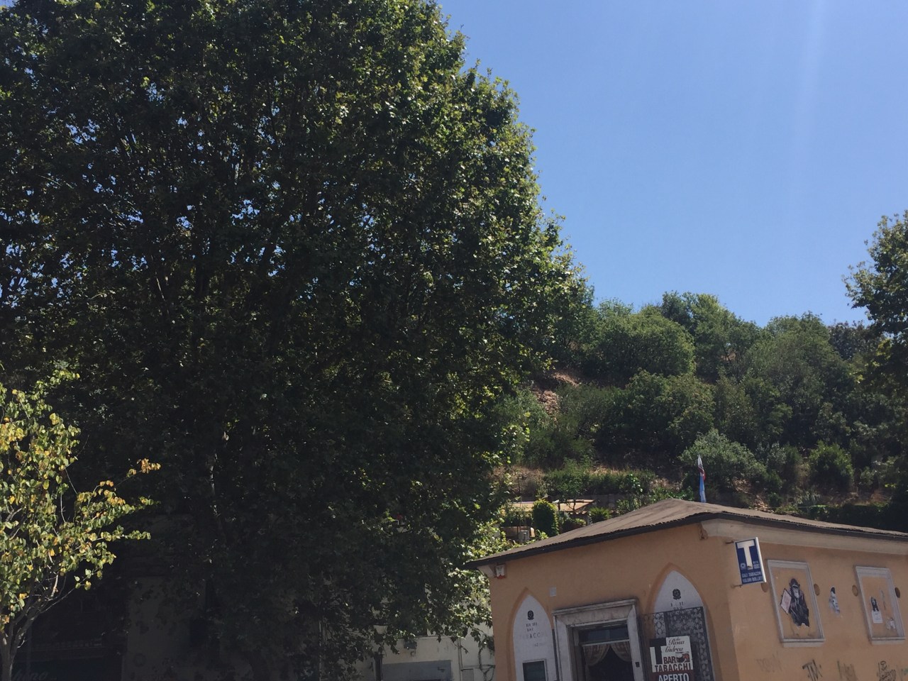 Across from the slaughter house is an ancient man-made hill. Back in the day, the food containers that held olive oil would slowly be broken down, and essentially become useless to the workers. They would break them apart and started to create a hill, almost like a landfill. Due to the smell, they covered them with lime, which actually made them cement together. Years later, they discovered that this ceramic hill kept a constant temperature of 17 Celsius, and thus was used as a wine cellar. Restaurants and cellars were formed into the hill.