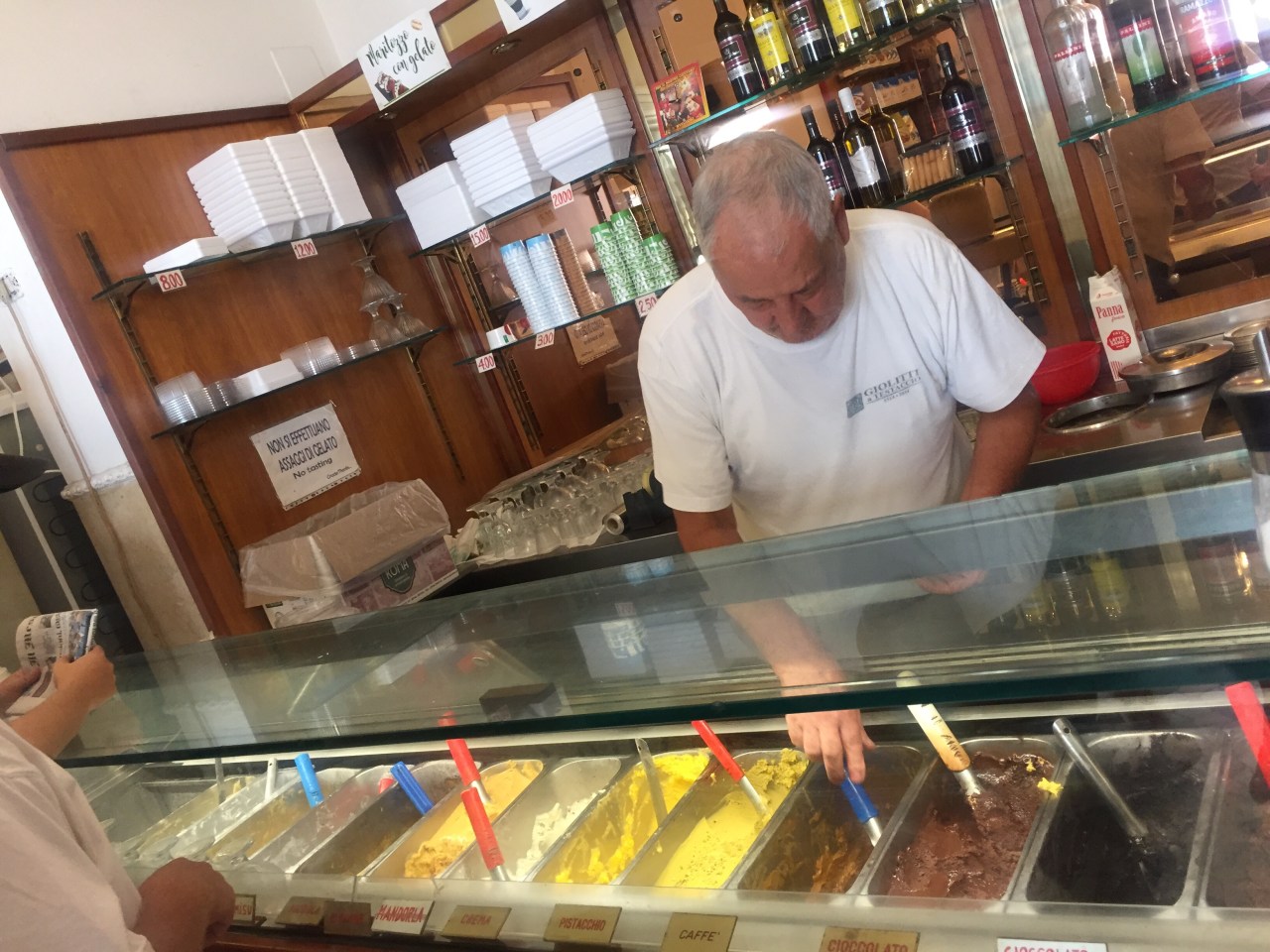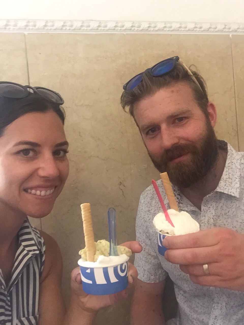 Just when we were thinking that we couldn’t possibly eat anymore, we were taken to Giolitti, a bar serving some of the best gelato in the city in 1914. Here I ordered the fig and lemon, and Daniel got the Zabaione (local special of egg yolk and wine) and pistachio.