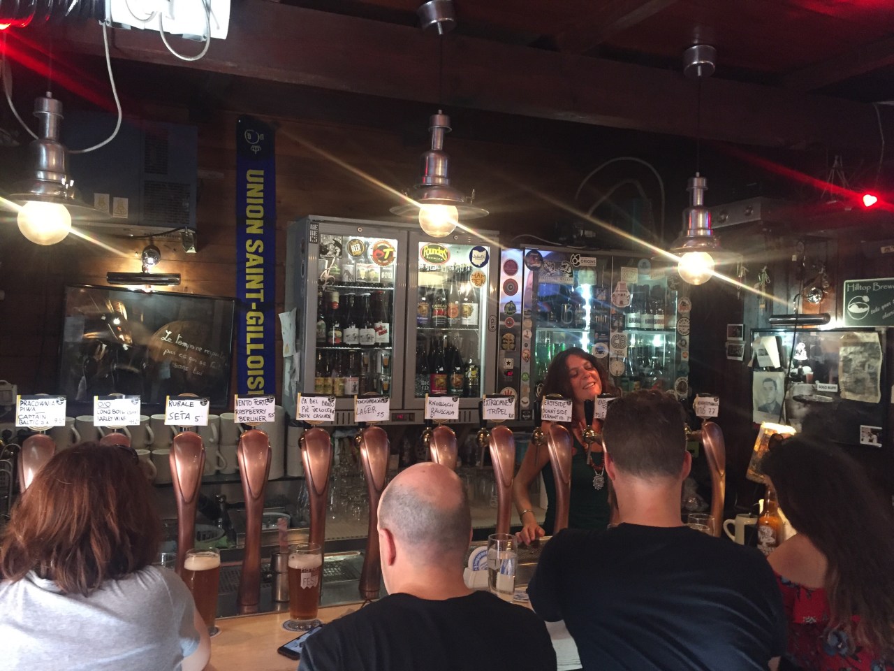 We took the tram back to our neighborhood to stop for a little drink. We found a local bar where they sell craft beers. They were actually rated #1 in 2010 for best beer bars in the world. We each got a pint to quench our thirst from the heat.