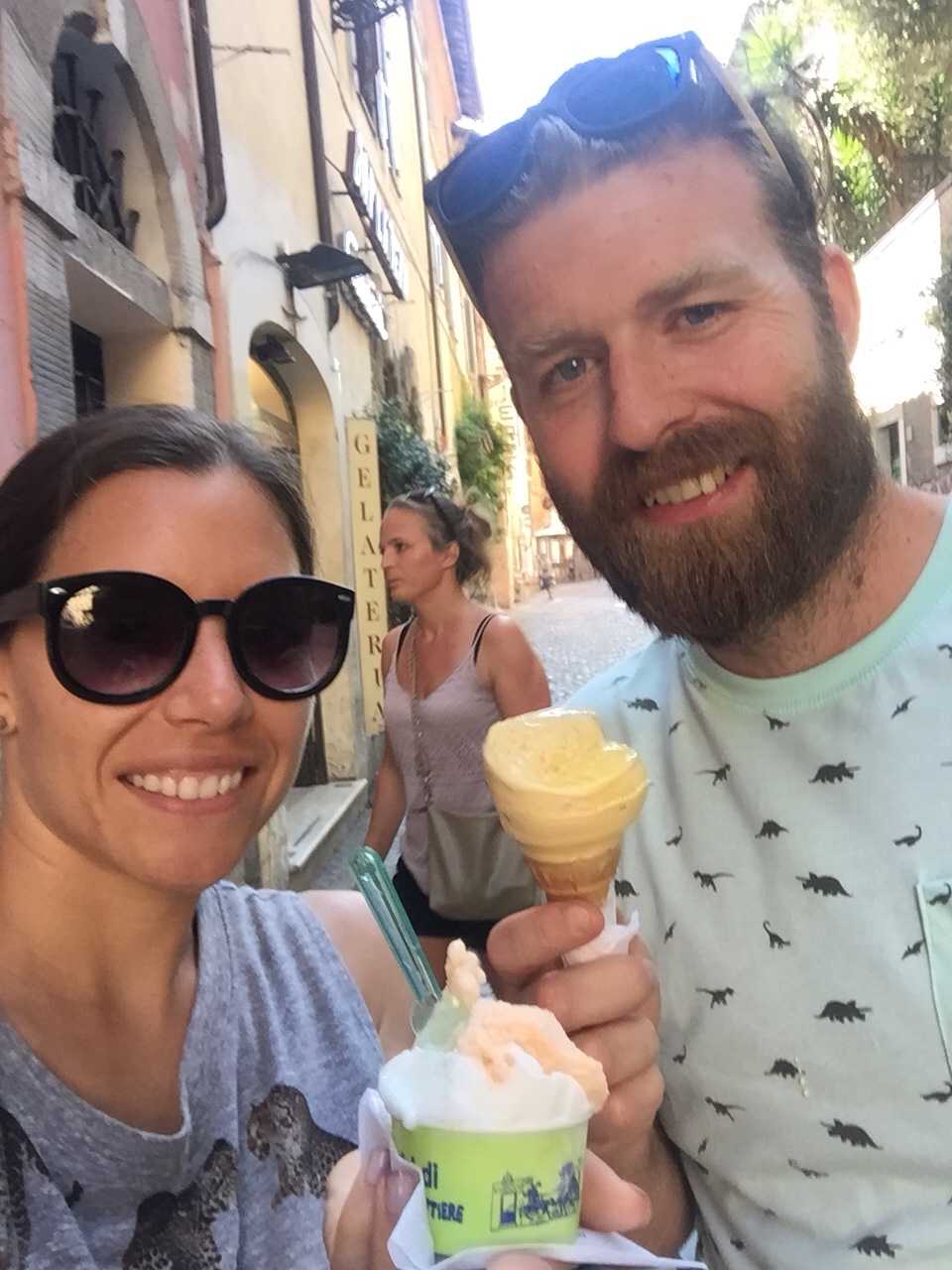 And of course, an afternoon isn’t complete without a gelato. Today, I tried the melon and lemon (you can see I’m really venturing outside of the box), and Daniel had two local favourites: zabione and a hazelnut.
