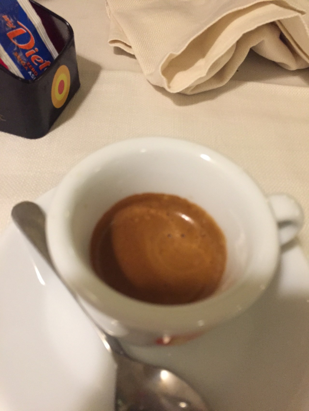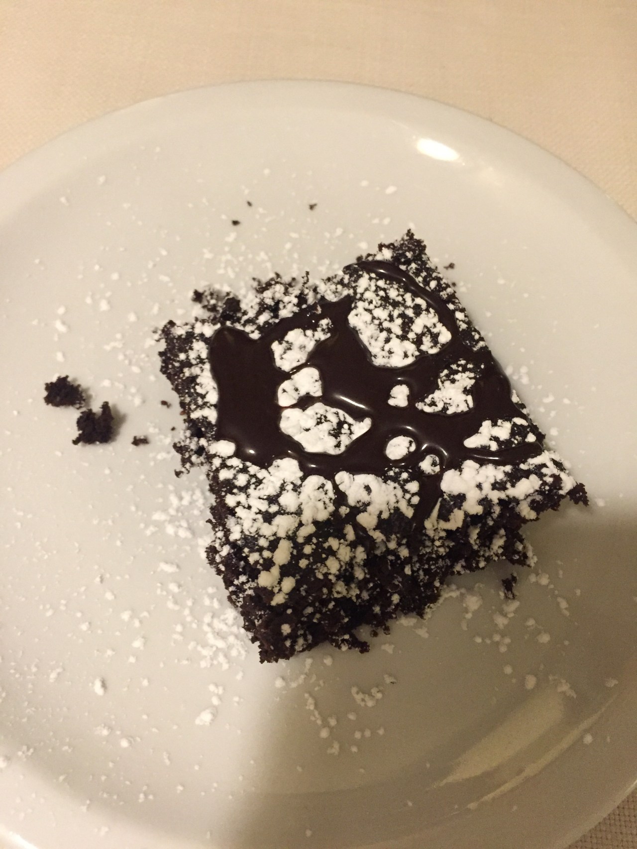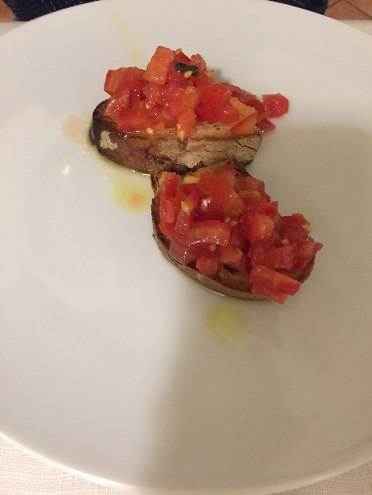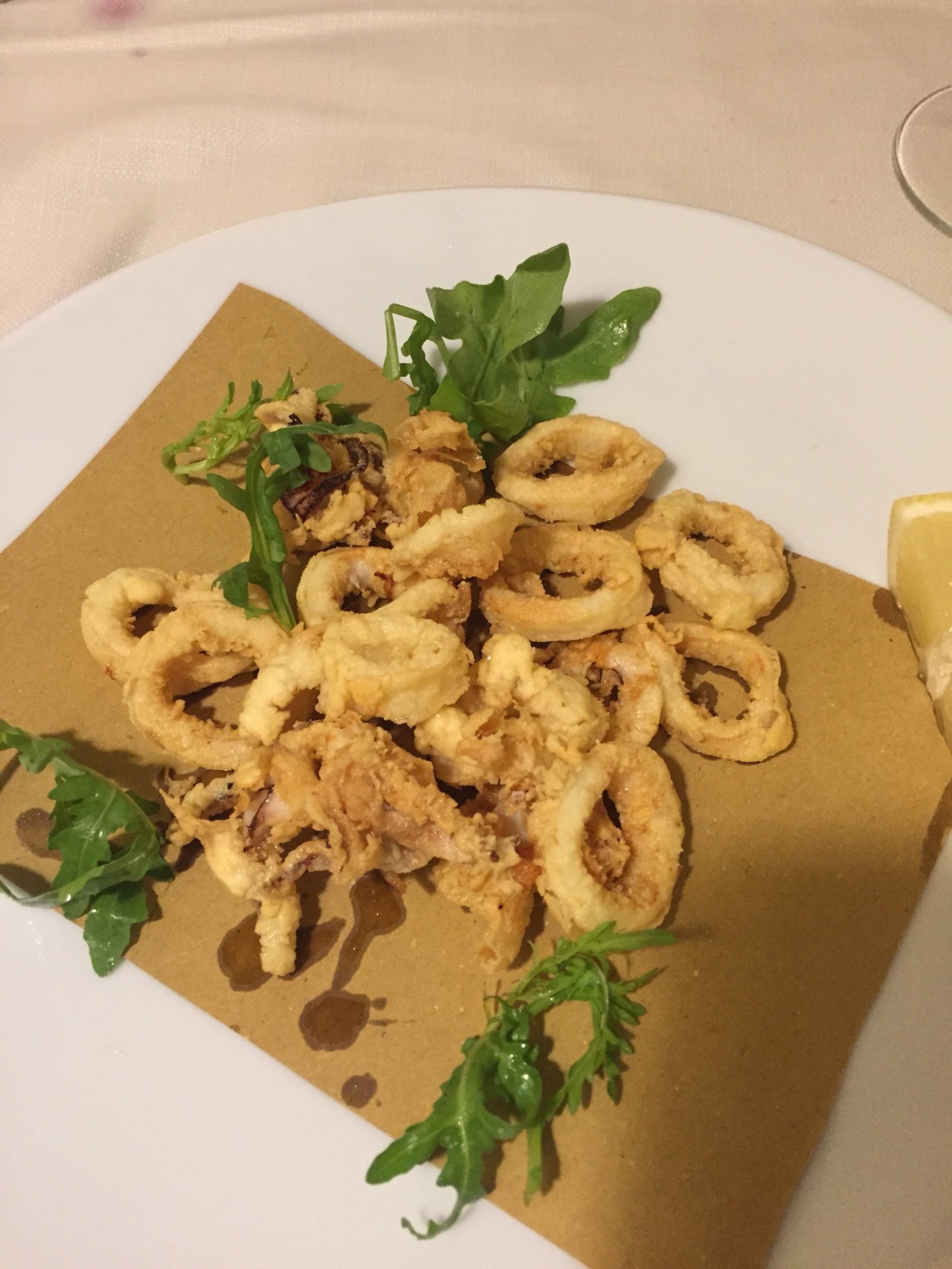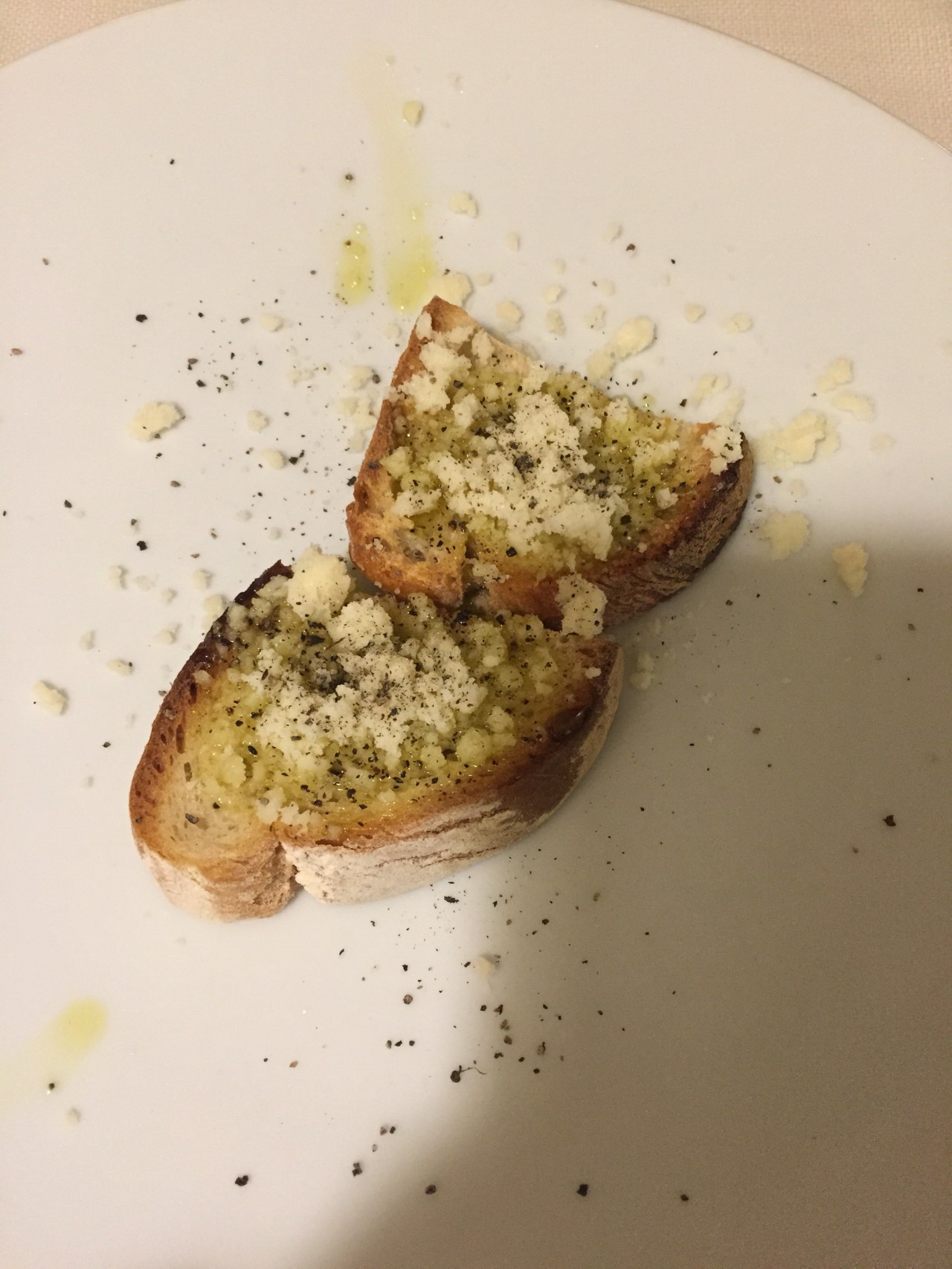 For dinner, we went to L’Antico Moro. They had an set menu available where you could choose either the fish or meat option. I went for the fish and Daniel the latter. To begin with, we both received a bruschetta: Daniel’s was the traditional and mine was a white version, with pepper and pecorino cheese.