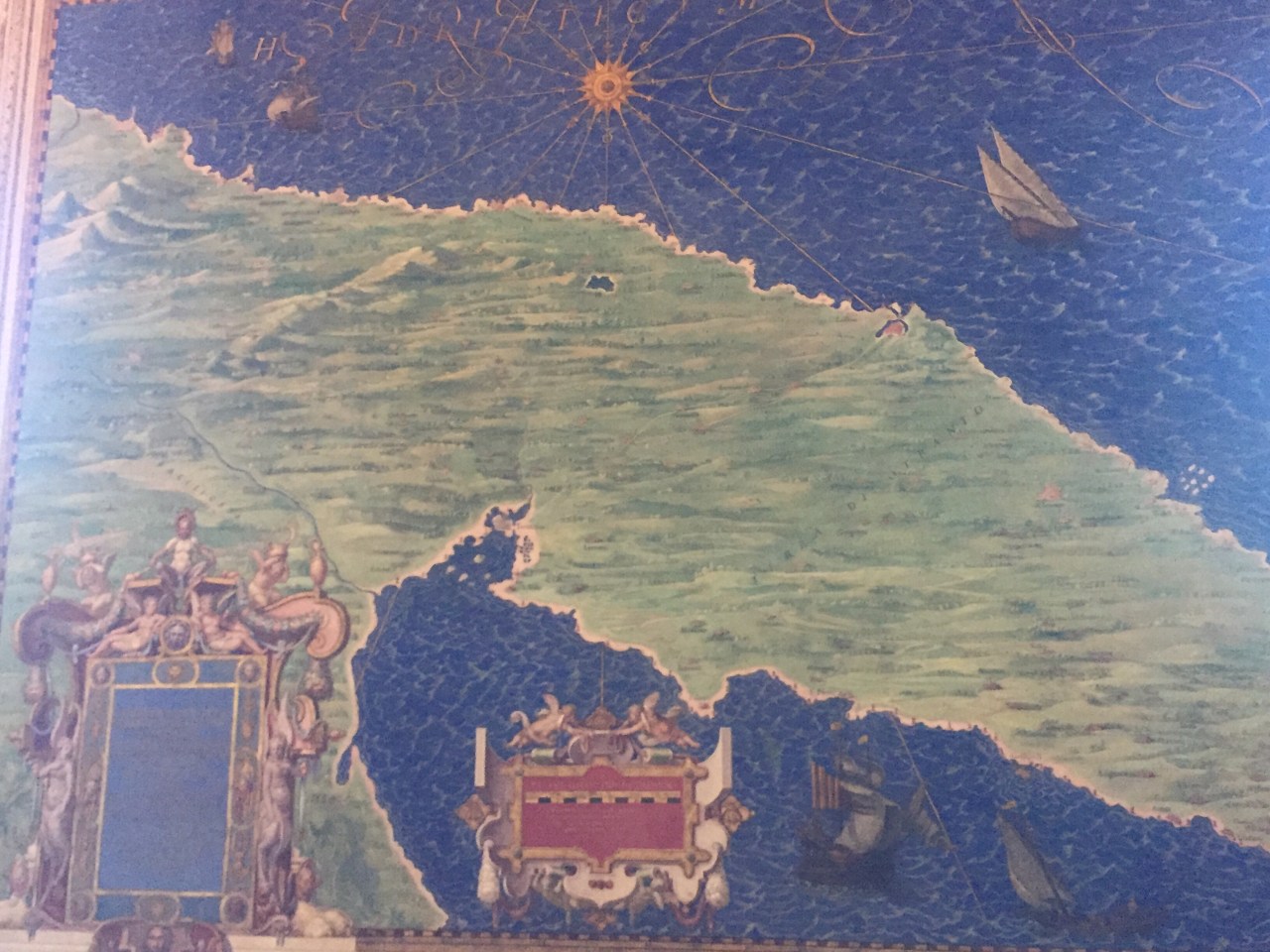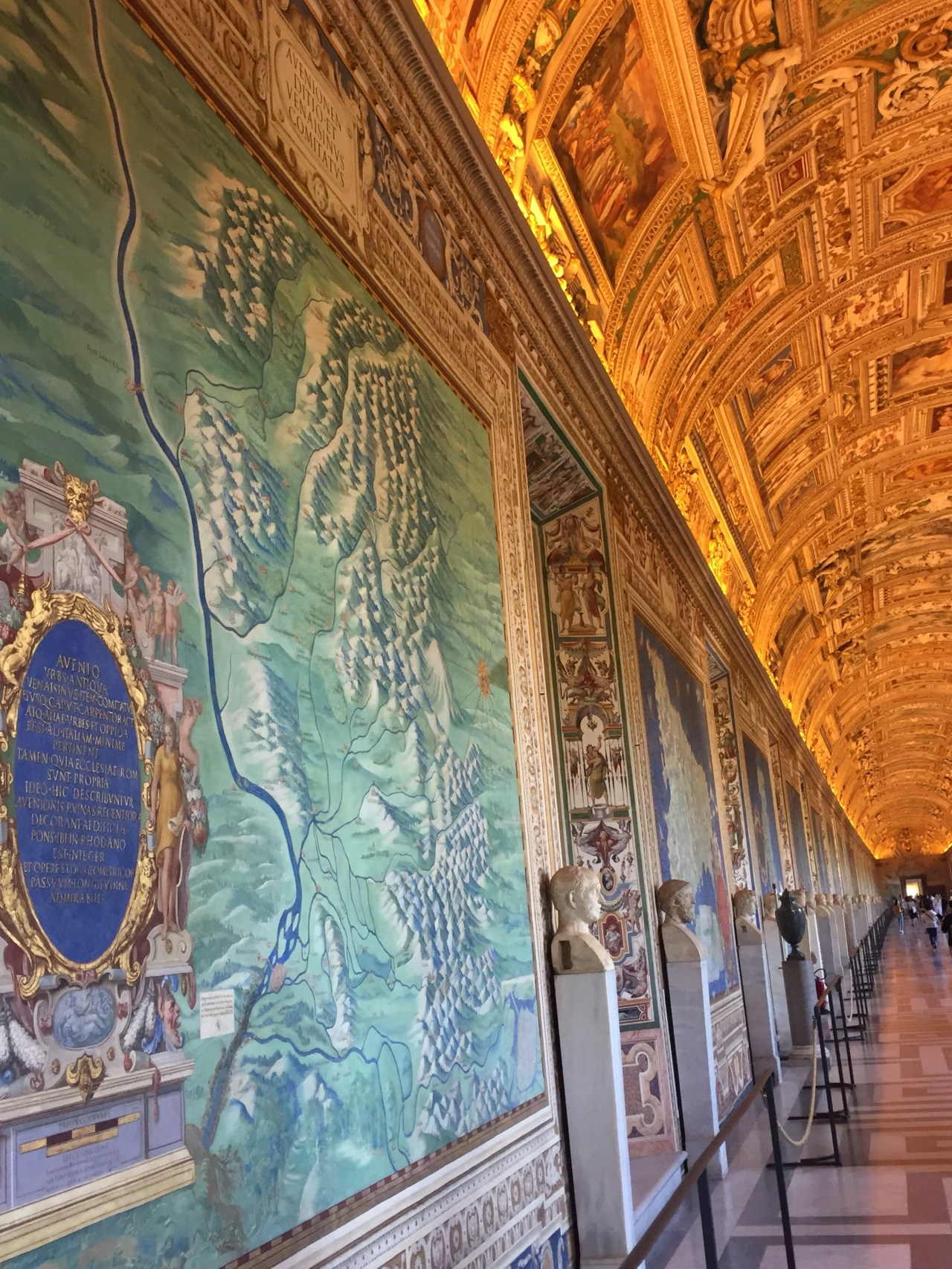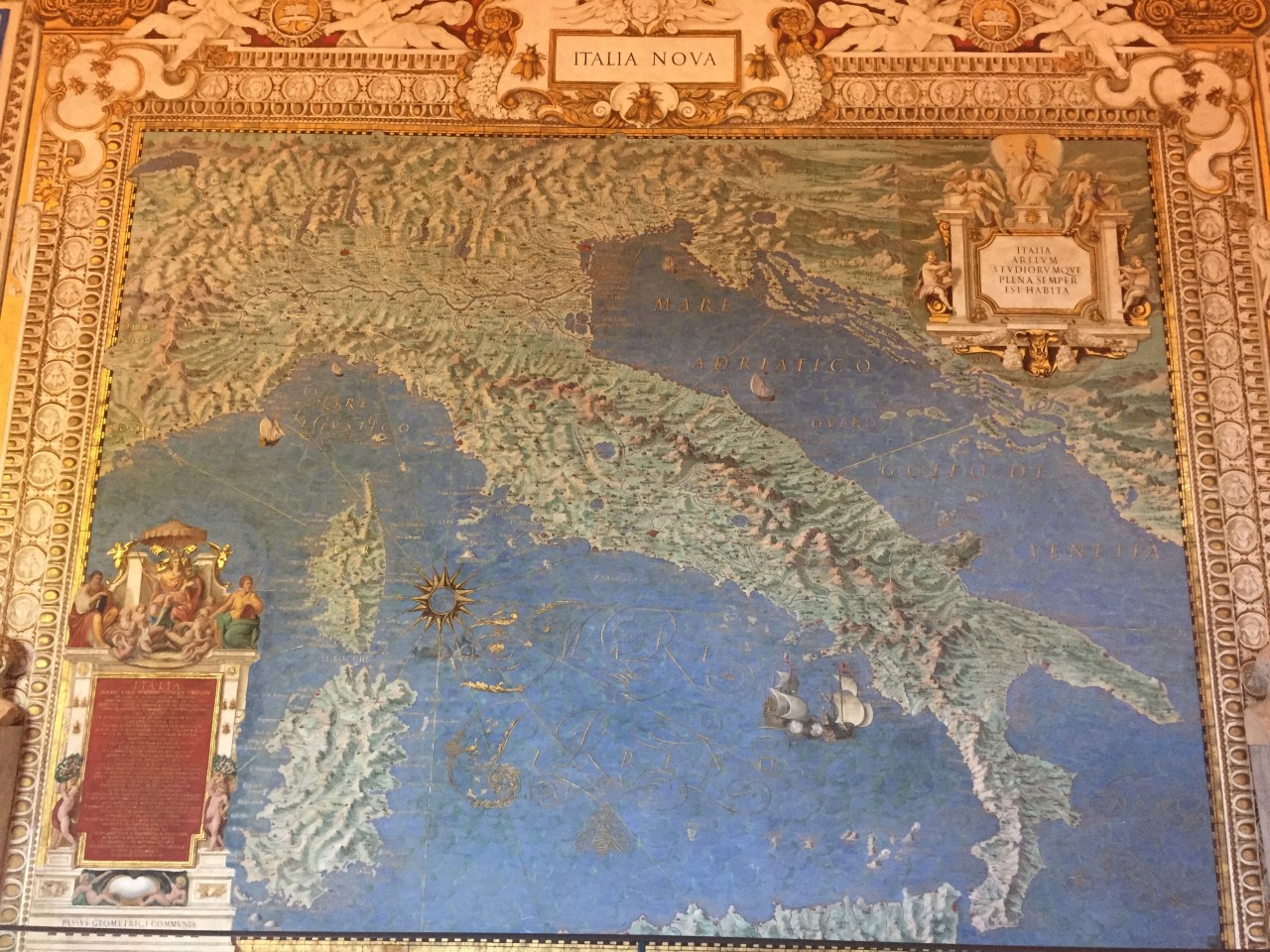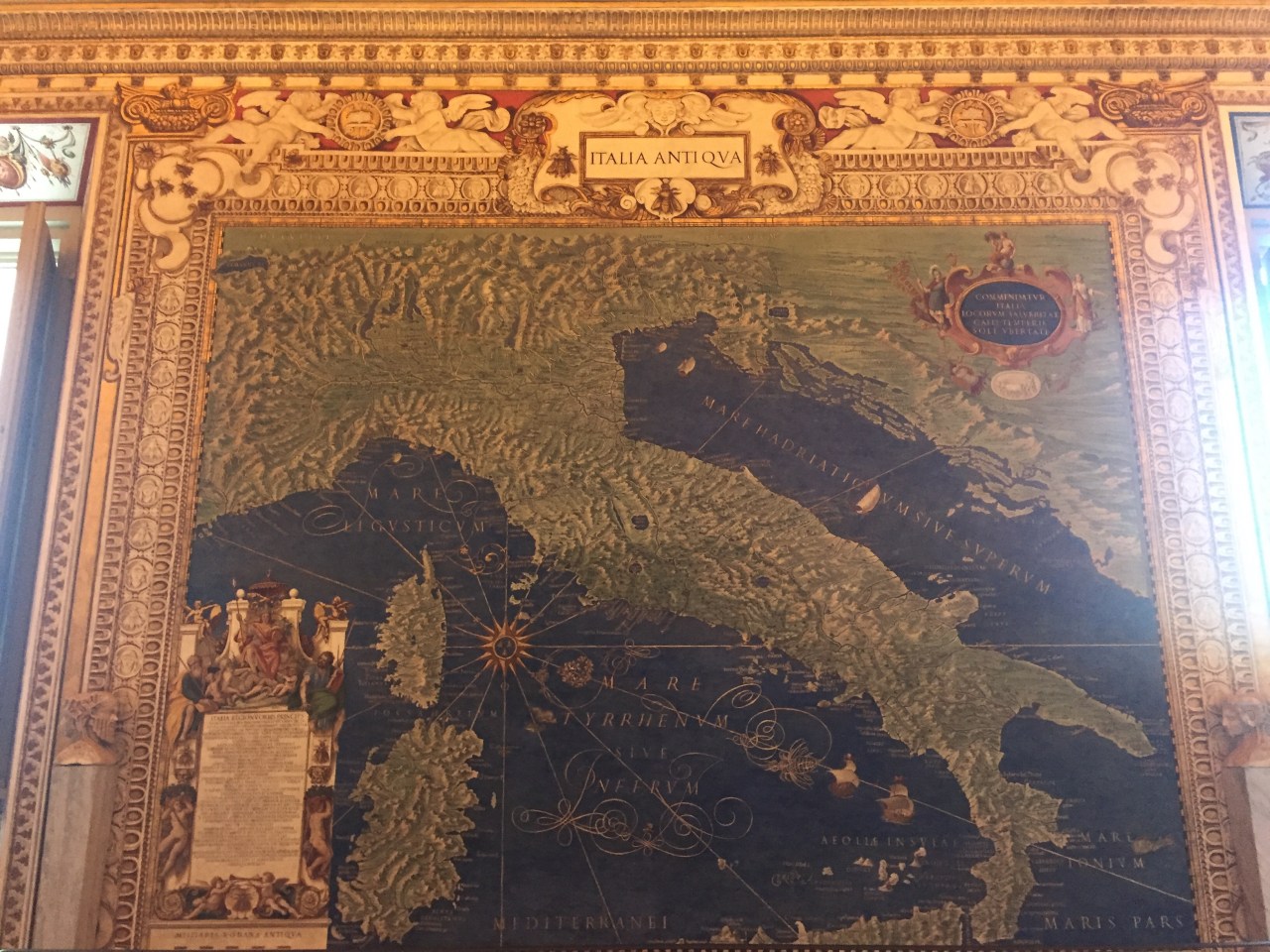 Probably my favourite hall in the museum was the Gallery of Maps. It was commissioned by Pope Gregory XIII, and it took the artist Danti three years to paint 40 panels in the 120m long hall. It’s said that these maps are 80% accurate. At the end of the hall are two maps labeled ancient Italy and modern Italy.