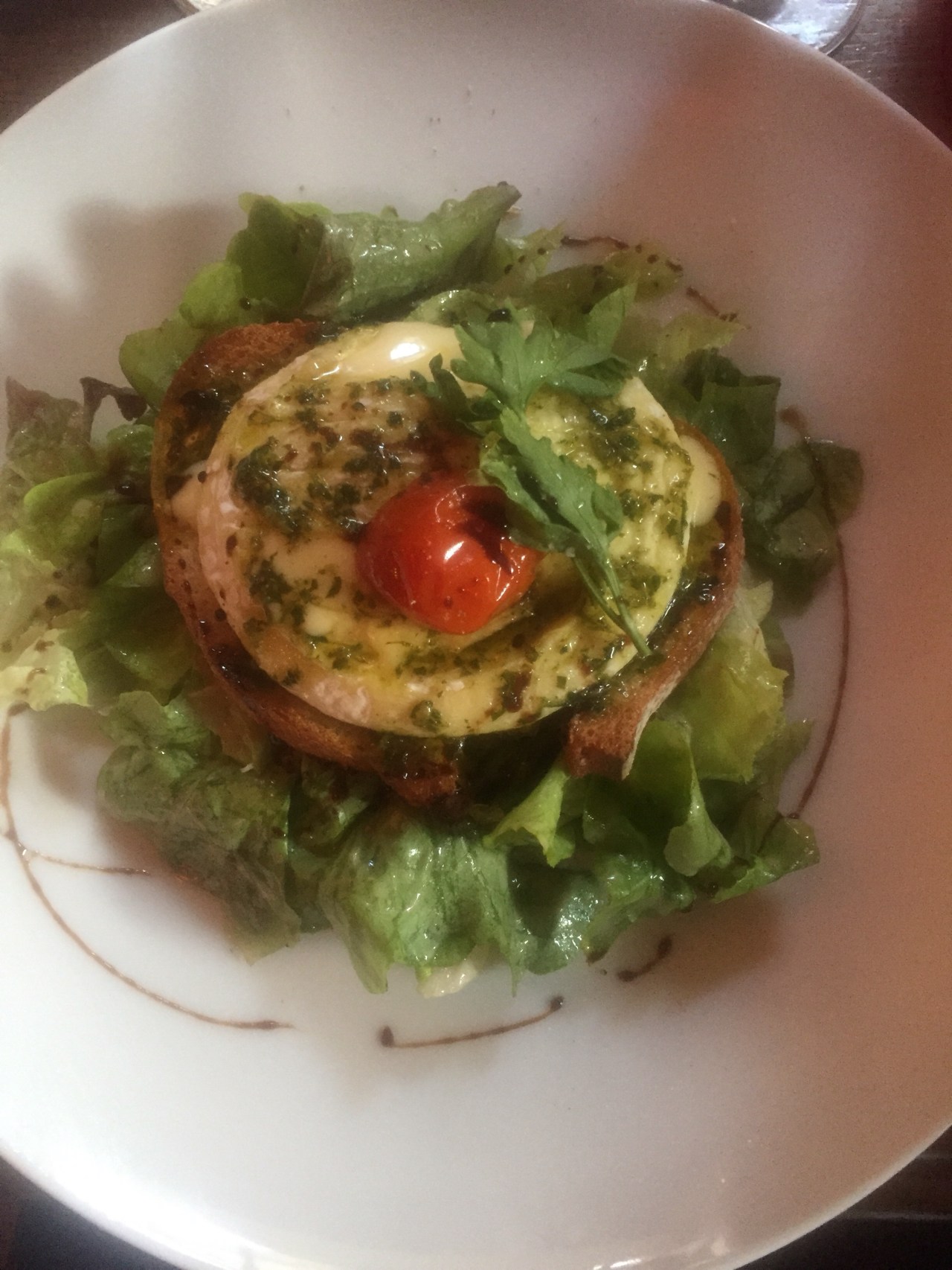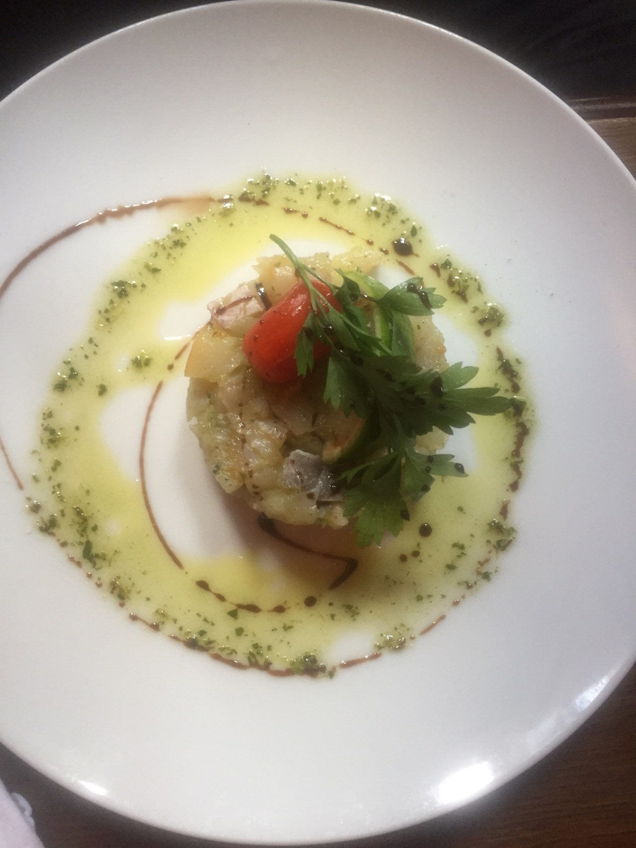 To start with, we each had an appetizer. Daniel ordered the fish tartar and I ordered the baked cheese bread on a salad.