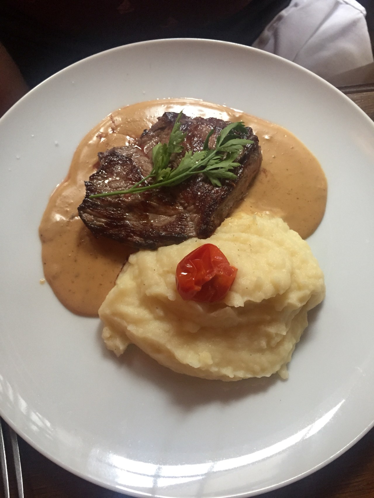 For our mains, Daniel had the steak in foie gras and I had the sea bass.
