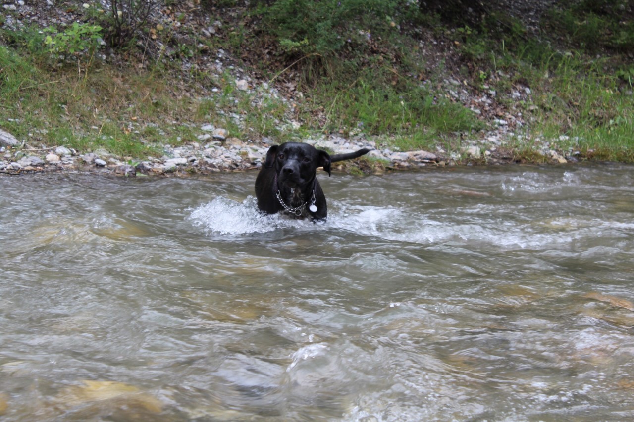 In the late morning, we drove into Radium to take our pups for a hike. Out of the four towns, Radium is the most dog friendly with many off leash hiking areas, and poops bags distributed throughout the town. Sinclair Trail offers a magnificent view of a canyon, mountains, and a creek that the dogs can play in.