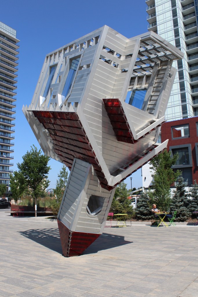 Calgary is becoming quite infamous for their quirky and at times controversial art installations. One of the latest temporary instalments has been placed in East Village to help beautify a public space. It’s a 6.7 metre high structure created by American artist Dennis Oppenheim. It first appeared at Venice Biennale in 1997, and since then has been famous around the world. It’s a New England style church placed upside down with its steeple in the ground. Simply turning the structure in the opposite direction, elicits questioning among viewers.